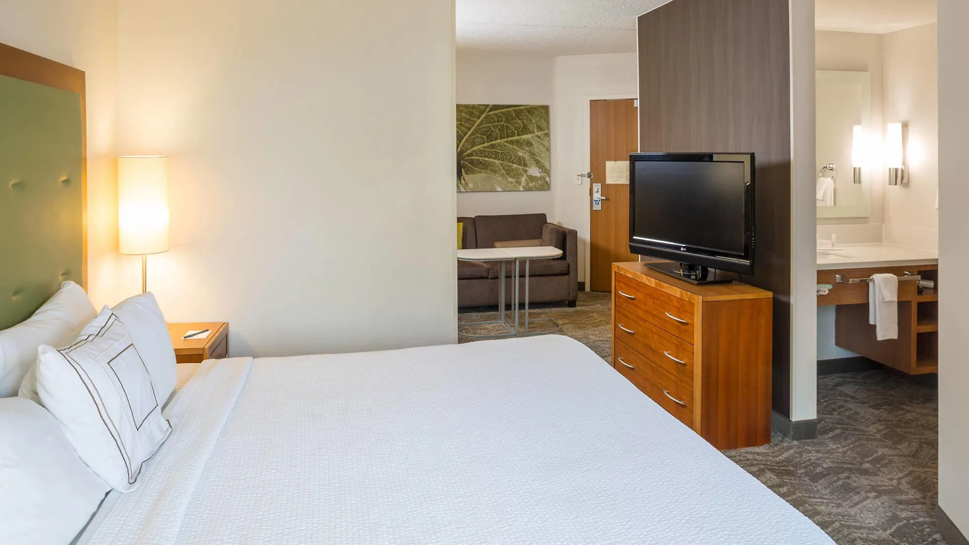 The rooms at the 3-star Springhill Suites Hampton in Hampton are beautifully furnished and very clean, providing a welcoming and comfortable space for guests. Each room features premium bedding, air conditioning, and separate sitting areas, perfect for unwinding after a long day. Modern travelers will appreciate amenities such as free wireless internet, a flat-screen TV with satellite channels, and laptop-friendly workspaces. The private bathrooms in each room are equipped with hair dryers and bath sheets, with some featuring a bath and a roll-in shower. The spacious suites offer separate sleeping and living room areas, while all rooms include tea and coffee making equipment, a sofa set, and a writing table. Whether you are traveling for business or leisure, these rooms offer the perfect retreat to unwind and recharge.